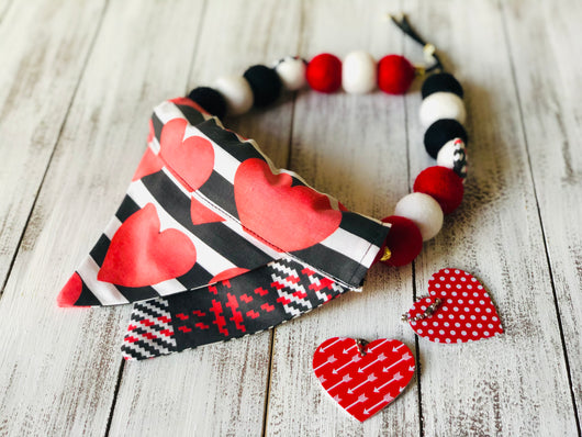 - Cute balloon heart on stripes & Chic black red white plaid layered Poshmina.